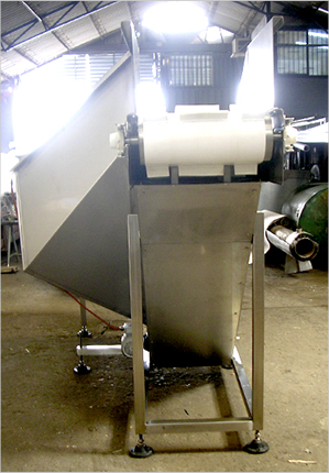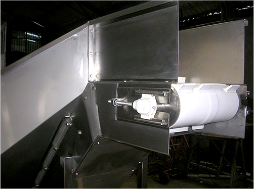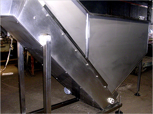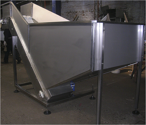 Elevador de envases tipo cuello cisne con tolva de recepcion